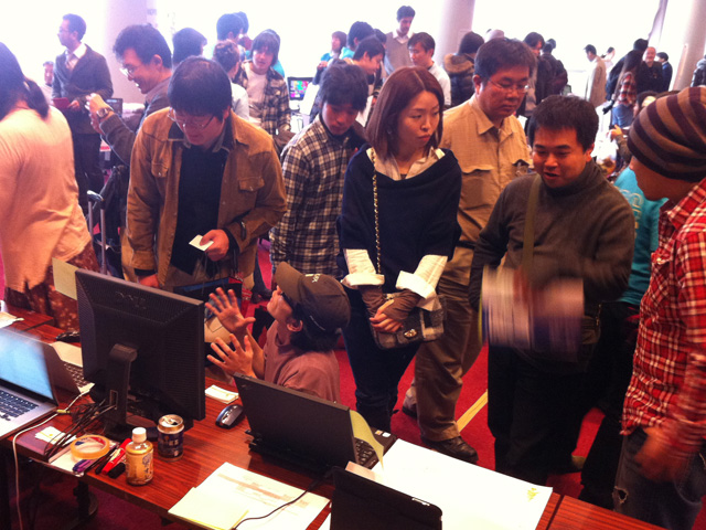 お隣のブースもCMSのWordPress。こちらは世界的に使用されているCMSですね。そのWordPressブーススタッフの @takayukister さんもなぜかBaserCMSブース側に来て広報っぽく座っておられました(笑。「Baserブースの中で売上No.1を目指す!」という意気込みも聞こえてきた気が…。(あ、もちろんBaserは無料で使用できますよ!)